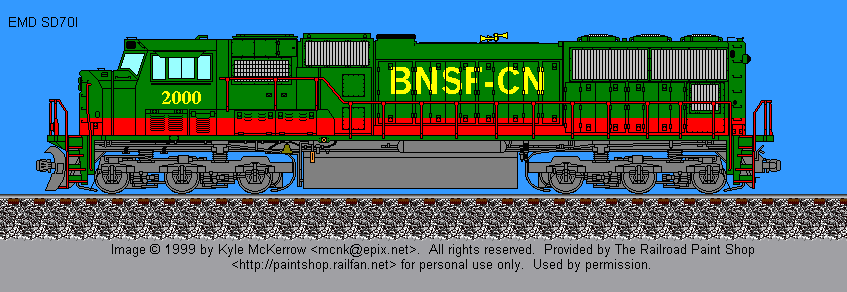 All rights reserved. Used by permission. This image has been submitted for the BNSF-CN Paint Scheme Contest, and may not be reposted without the permission of both the artist and the painter. Linking directly to the image on the Railroad Paint Shop site is prohibited.