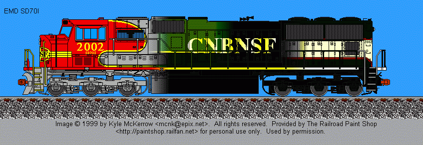 All rights reserved. Used by permission. This image has been submitted for the BNSF-CN Paint Scheme Contest, and may not be reposted without the permission of both the artist and the painter. Linking directly to the image on the Railroad Paint Shop site is prohibited.