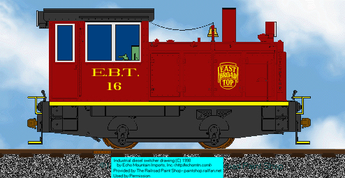 Artist's Note: I model the East Broad Top as if it had continued as a common carrier into the 1980's. When the oil embargoes of the late 60's early 70's occurred, America was searching for a cheap but proven source of alternative fuel. Given its long track record, coal was chosen. The East Broad Top modernized, much like the White Pass and Yukon, using export locomotives of 3 foot gauge. The original steamers are kept for sentimental reasons, and for use during tourist season in the summer. They are also pressed into occasional revenue service during peak demand seasons.