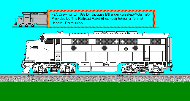 F2A drawing © 1998 by Jacques Belanger. All rights reserved. Used by permission. If you would like to use this image, or a painted version of it on your web site, you may do so, providing that you notify the artist and place a link back to The Railroad Paintshop. Linking directly to the image on the Railroad Paint Shop site is prohibited. If you want to use the image in any other form of publication, you must have the prior written permission of the artist.