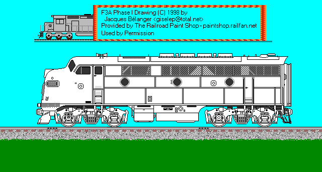 F3A phase I drawing © 1998 by Jacques Belanger. All rights reserved. Used by permission. If you would like to use this image, or a painted version of it on your web site, you may do so, providing that you notify the artist and place a link back to The Railroad Paintshop. Linking directly to the image on the Railroad Paint Shop site is prohibited. If you want to use the image in any other form of publication, you must have the prior written permission of the artist.