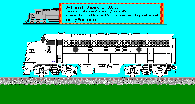 F3A phase III drawing © 1998 by Jacques Belanger. All rights reserved. Used by permission. If you would like to use this image, or a painted version of it on your web site, you may do so, providing that you notify the artist and place a link back to The Railroad Paintshop. Linking directly to the image on the Railroad Paint Shop site is prohibited. If you want to use the image in any other form of publication, you must have the prior written permission of the artist.