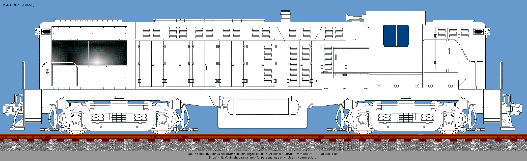 AS-16 (phase I) drawing © 1999 by Joshua Moldover. All rights reserved. Used by permission. If you would like to use this image, or a painted version of it on your web site, you may do so, providing that you notify the artist and place a link back to The Railroad Paintshop. Linking directly to the image on the Railroad Paint Shop site is prohibited. If you want to use the image in any other form of publication, you must have the prior written permission of the artist.