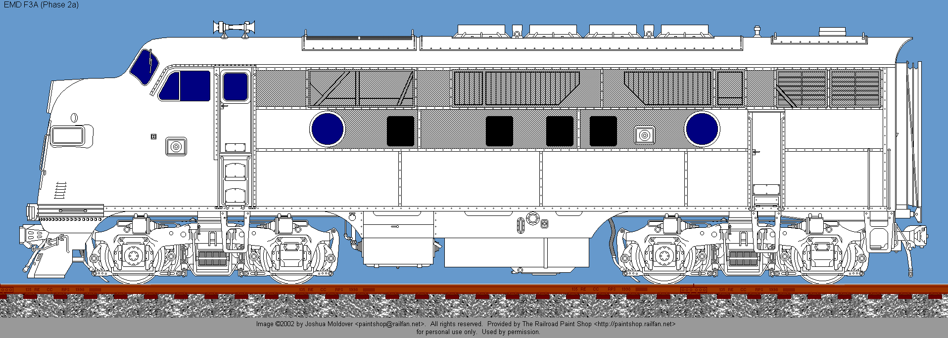 F3A drawing © 2002 by Joshua Moldover. All rights reserved. Used by permission. If you would like to use this image, or a painted version of it on your web site, you may do so, providing that you notify the artist and place a link back to The Railroad Paintshop. Linking directly to the image on the Railroad Paint Shop site is prohibited. If you want to use the image in any other form of publication, you must have the prior written permission of the artist.