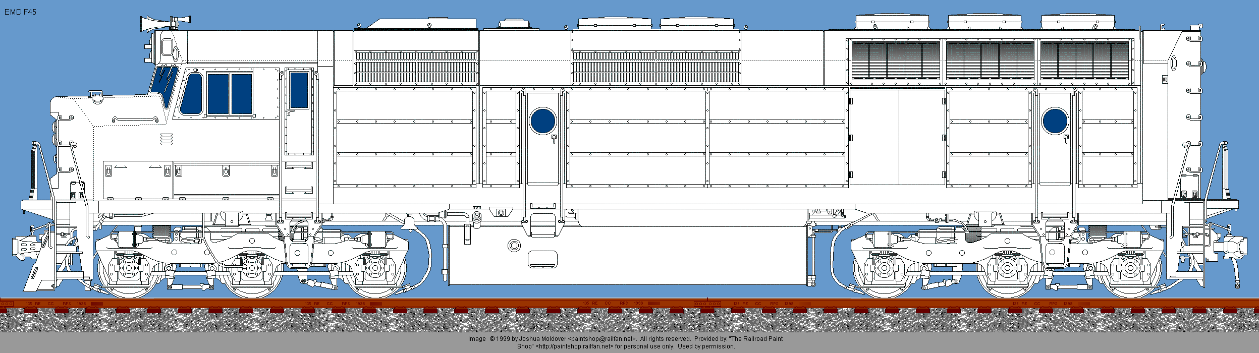 F45 drawing © 1999 by Joshua Moldover. All rights reserved. Used by permission. If you would like to use this image, or a painted version of it on your web site, you may do so, providing that you notify the artist and place a link back to The Railroad Paintshop. Linking directly to the image on the Railroad Paint Shop site is prohibited. If you want to use the image in any other form of publication, you must have the prior written permission of the artist.