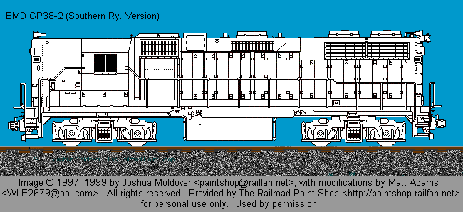 GP38-2 drawing © 1997, 1999 by Joshua Moldover with modifications by Matt Adams.