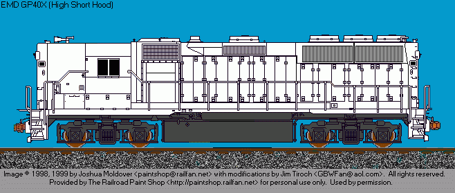 GP40X drawing © 1998, 1999 by Joshua Moldover with modifications by Jim Tiroch.