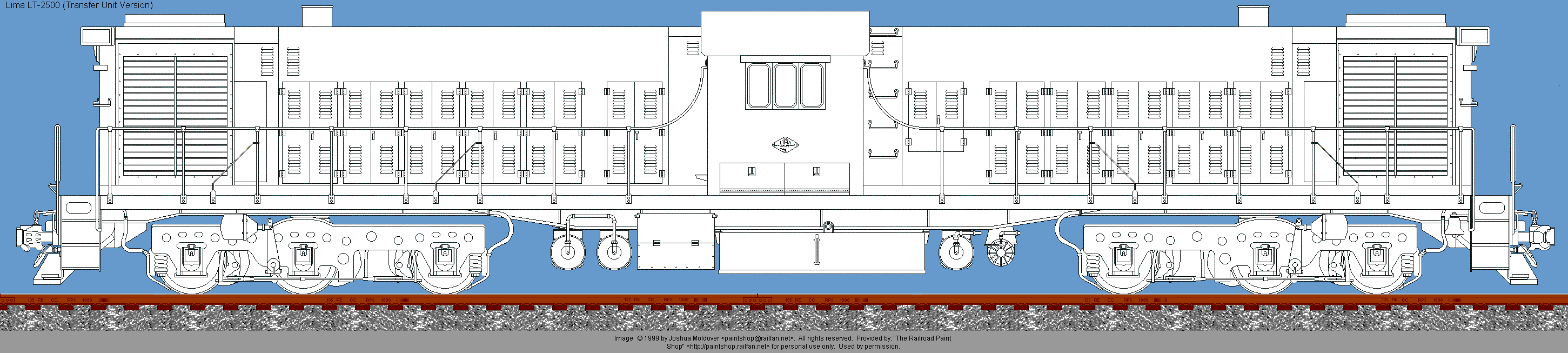 LT-2500 drawing © 1999 by Joshua Moldover. All rights reserved. Used by permission. If you would like to use this image, or a painted version of it on your web site, you may do so, providing that you notify the artist and place a link back to The Railroad Paintshop. Linking directly to the image on the Railroad Paint Shop site is prohibited. If you want to use the image in any other form of publication, you must have the prior written permission of the artist.