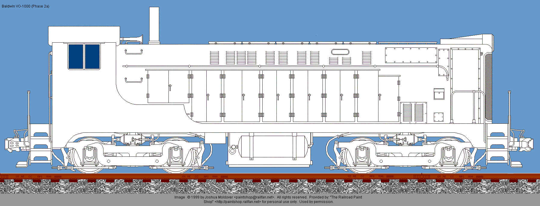 VO-1000 drawing © 1999 by Joshua Moldover. All rights reserved. Used by permission. If you would like to use this image, or a painted version of it on your web site, you may do so, providing that you notify the artist and place a link back to The Railroad Paintshop. Linking directly to the image on the Railroad Paint Shop site is prohibited. If you want to use the image in any other form of publication, you must have the prior written permission of the artist.