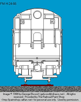 H-24-66 drawing © 1998 by George Elwood. All rights reserved. Used by permission. If you would like to use this image, or a painted version of it on your web site, you may do so, providing that you notify the artist and place a link back to The Railroad Paintshop. Linking directly to the image on the Railroad Paint Shop site is prohibited. If you want to use the image in any other form of publication, you must have the prior written permission of the artist.