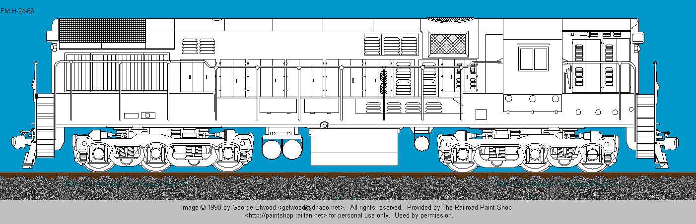 H-24-66 drawing © 1998 by George Elwood. All rights reserved. Used by permission. If you would like to use this image, or a painted version of it on your web site, you may do so, providing that you notify the artist and place a link back to The Railroad Paintshop. Linking directly to the image on the Railroad Paint Shop site is prohibited. If you want to use the image in any other form of publication, you must have the prior written permission of the artist.